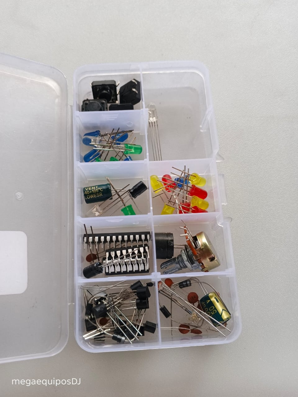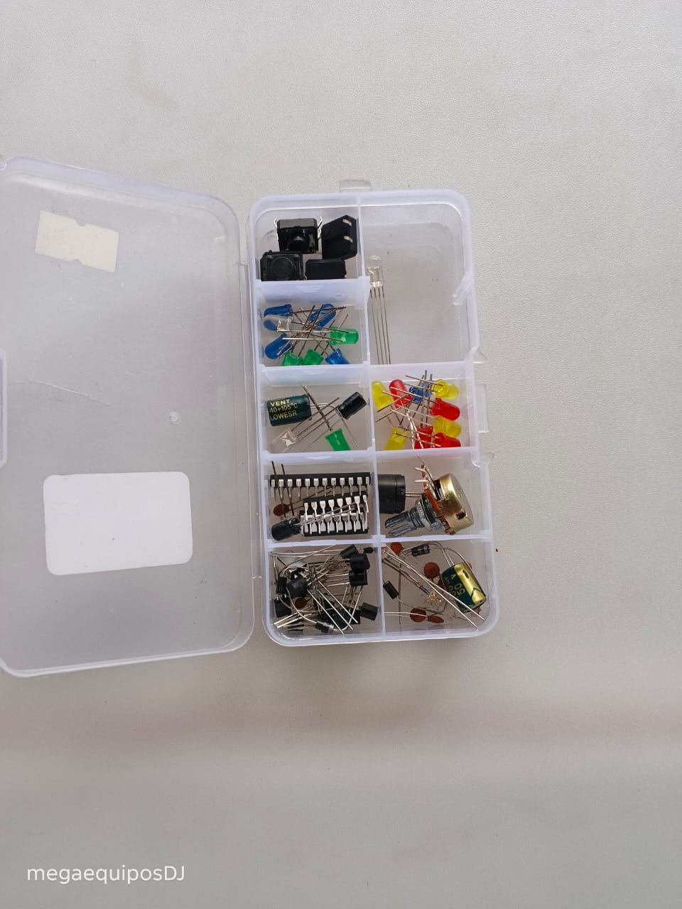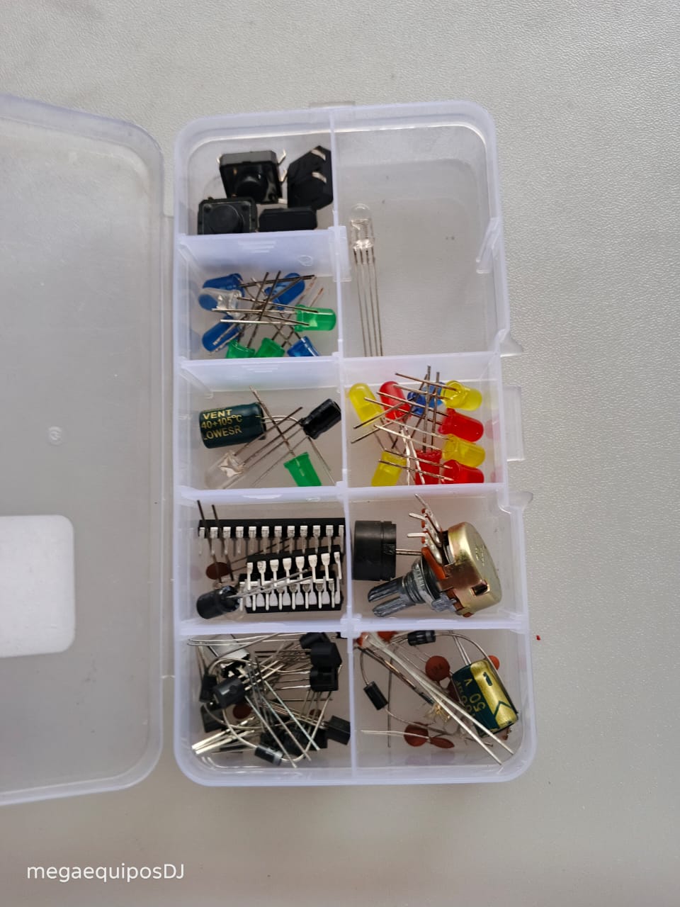 ¡Inicia tu camino en la electrónica hoy! Kit esencial de componentes para estudiantes y makers. Incluye todo lo necesario para prototipar proyectos con Arduino: LEDs, pulsadores, potenciómetros y circuitos integrados. Versatilidad y calidad en un solo organizador.
